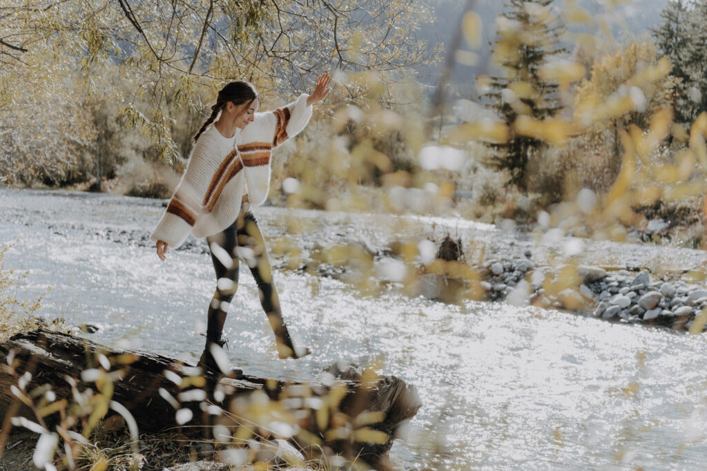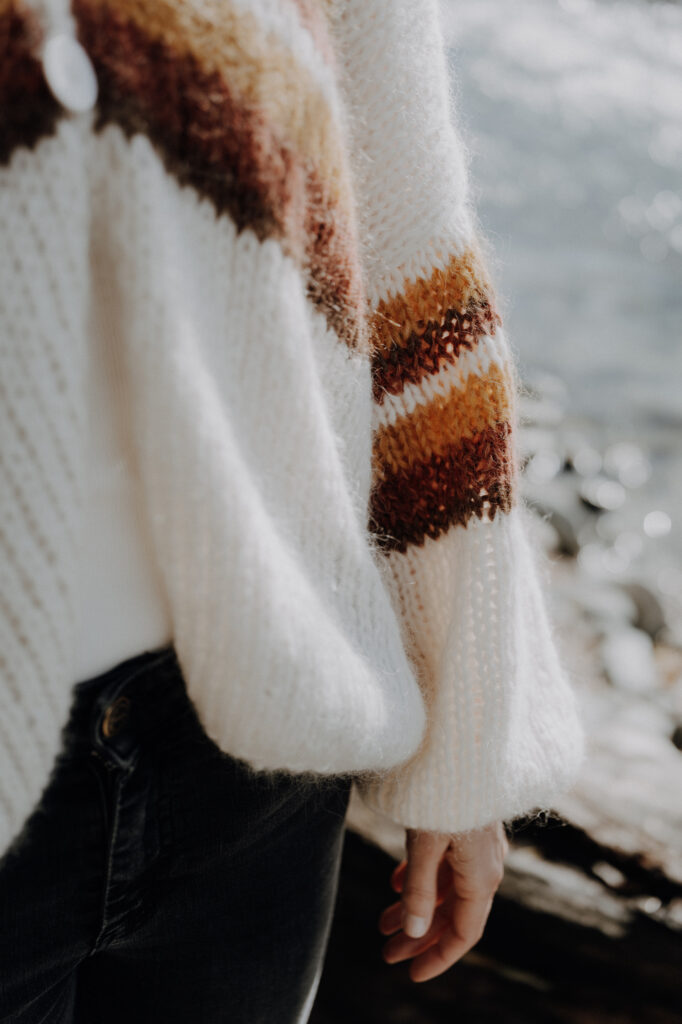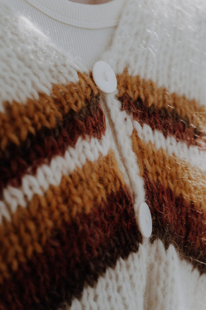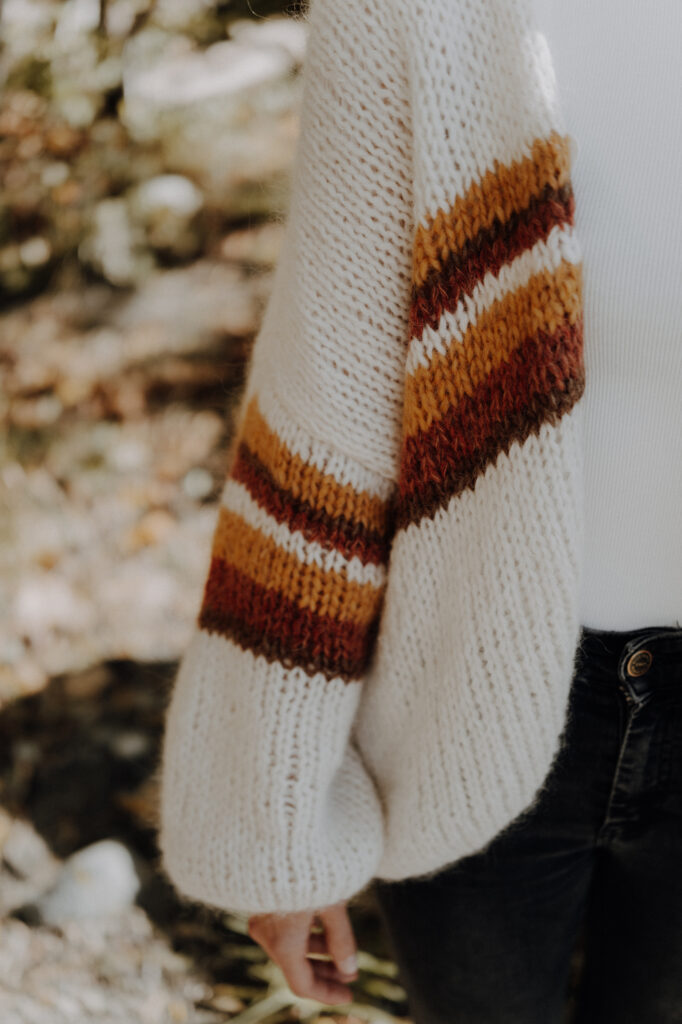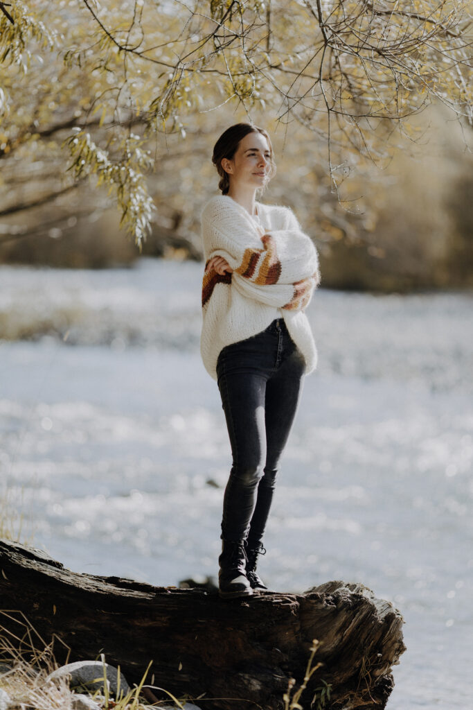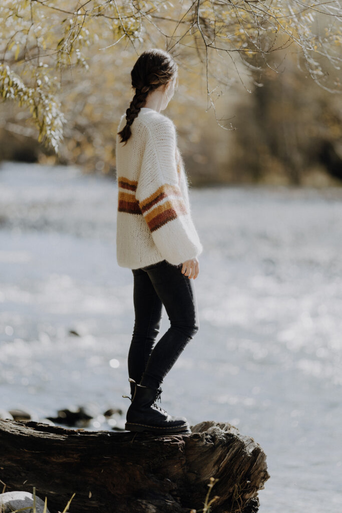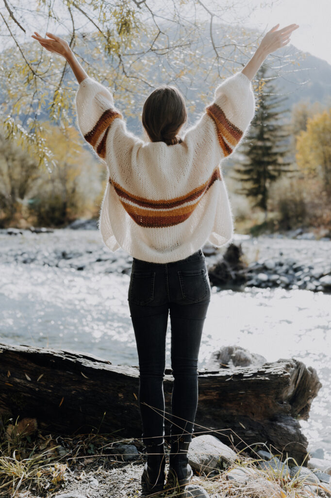 Ob die sanften Grüntöne, die an weiches Flussgras erinnern oder die warmen Streifen, die wie Sonnenstrahlen durch die Bäume leuchten – beide Cardigans erwecken dieses „Ich bleib noch ein wenig draußen“-Gefühl. Die handgestrickten Herbst-Modelle umhüllen dich wie eine kuschelige Umarmung an klaren Tagen am Fluss, bei Spaziergängen über moosige Wege oder kleinen Auszeiten im Garten. Doch auch in den Großstadtdschungel zaubern die natürlichen Farbtöne und die flauschig-warmen Materialien einen erdigen Touch. Jede Masche trägt ein bisschen Ruhe in sich – und ein Stück Natur, das du auf deiner Haut spüren kannst.